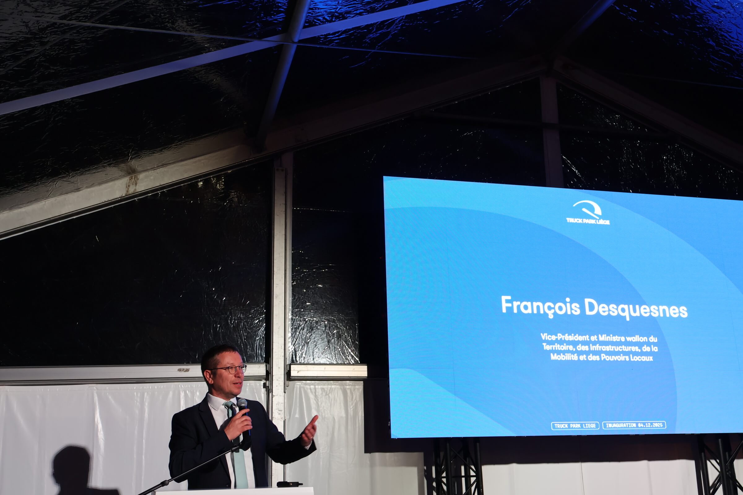 Attending the official opening of the new safe and secure truck parking area in Liège – Remicourt, François Desquesnes, Vice-President and Walloon Minister of Territory, Infrastructure, Mobility, and Local Authorities, underlined the strategic importance of road transport for the Walloon economy. He emphasized how the new parking area aligns with regional plans to improve freight logistics and driver working conditions through better infrastructure and safer resting environments.